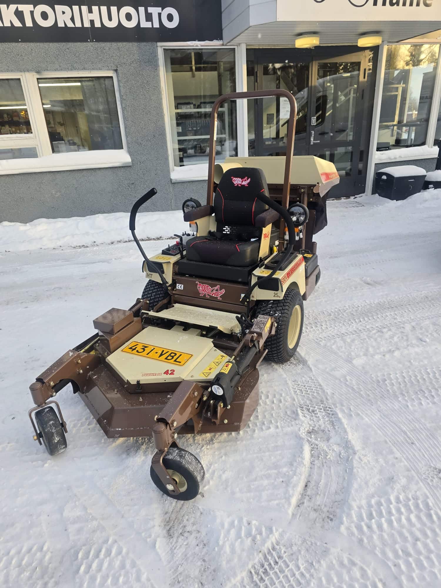 Kompakti Grasshopper 525V/42 yhdistää ammattitehon ja helppokäyttöisyyden. Paikallaankääntyvä etuleikkuri, työleveydeltään noin 107 cm, sopii erinomaisesti ahtaille pihoille ja hautausmaille. Tämä PowerVac® HT -keräinjärjestelmällä varustettu etuleikkuri pitää työn jäljen siistinä. Etuleikkurimalleissa on esteetön näkyvyys leikkuulaitteelle. Mukava työasento, värinätön kuljettajan tila ja kevyet hallintalaitteet tekevät ajamisesta vaivatonta ja miellyttävää.